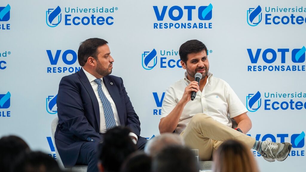 Con el propósito de formar ciudadanos críticos y comprometidos, ECOTEC ha dado inicio a la jornada académica Voto Responsable, un espacio para el diálogo y la reflexión activa sobre el futuro de Ecuador. A través de encuentros con los candidatos presidenciales Andrea González Nader, Carlos Rabascall, Juan Iván Cueva, Francesco Tabacchi y Henry Cucalón, nuestros estudiantes están conociendo diversas posturas y desarrollando una visión crítica y consciente. En ECOTEC, reafirmamos nuestro compromiso con la democracia y la formación de líderes preparados para enfrentar los desafíos de mañana.